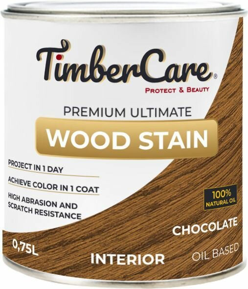 Масло для дерева и мебели TimberCare Wood Stain, быстросохнущие масла для дерева для внутренних работ, Шоколад/ Chocolate, 0.75 л