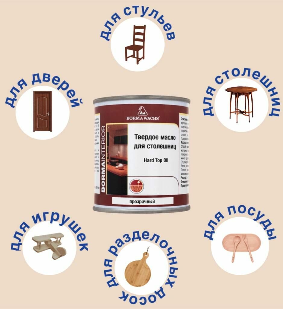 СохранитьМасло для дерева BORMA WACHS (0,125л) твердое масло для столешниц Hard Top Oil, бесцветное интересное: