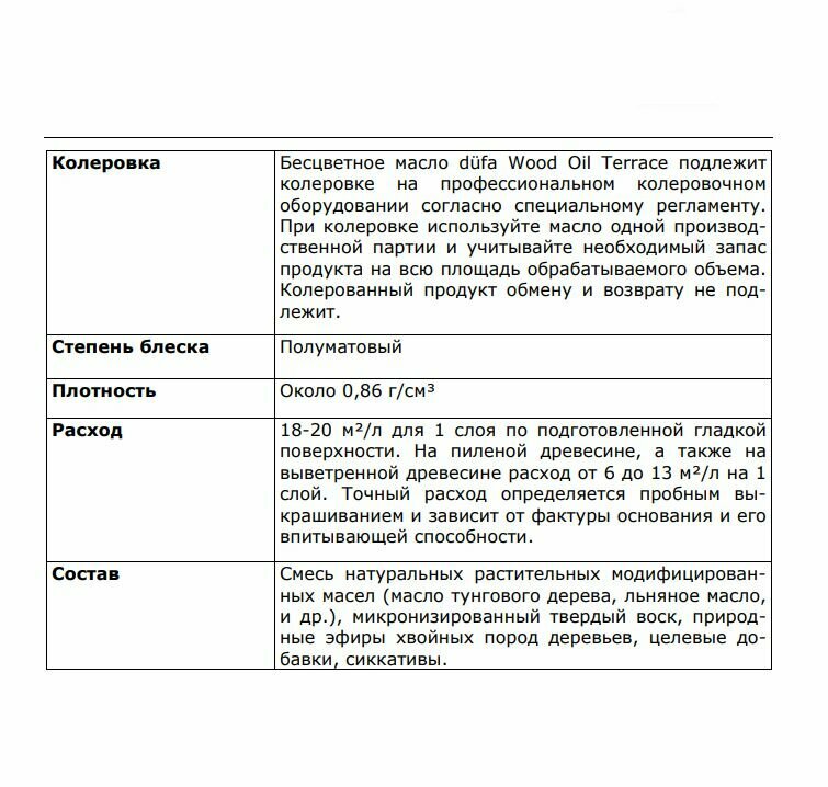 "Dufa Wood Oil Terraсe" - деревозащитное масло для дерева бесцветный, 0,8 л