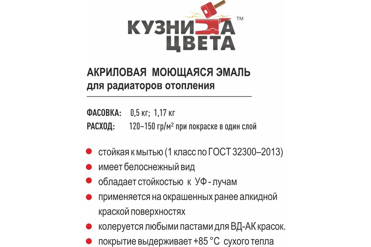 "Кузница Цвета" Акриловая моющаяся эмаль для радиаторов отопления 0,5кг - 0,4л