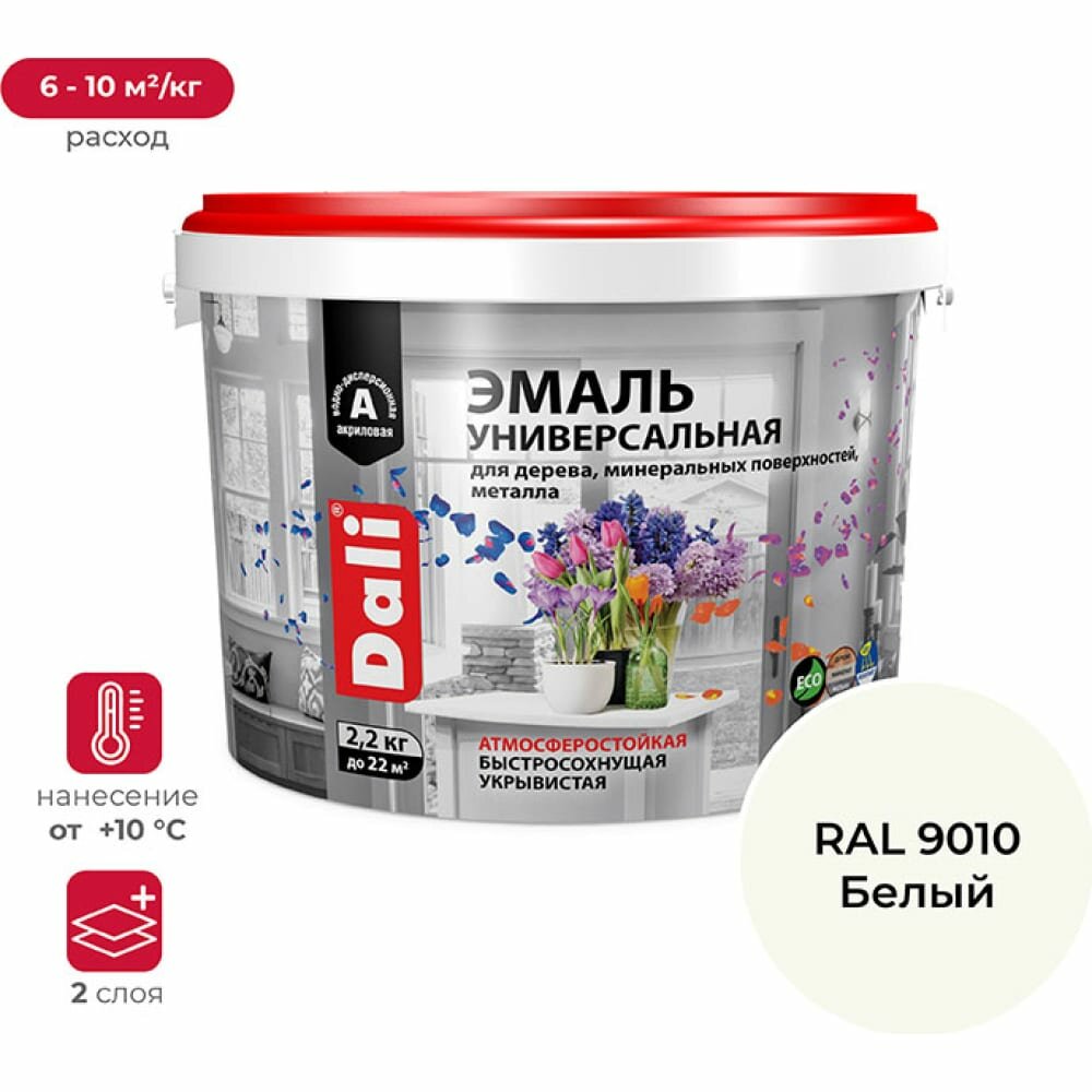 Купить Эмаль Универсальная Dali 2.2кг Белый без Запаха, Акриловая Глянцевая / Дали.