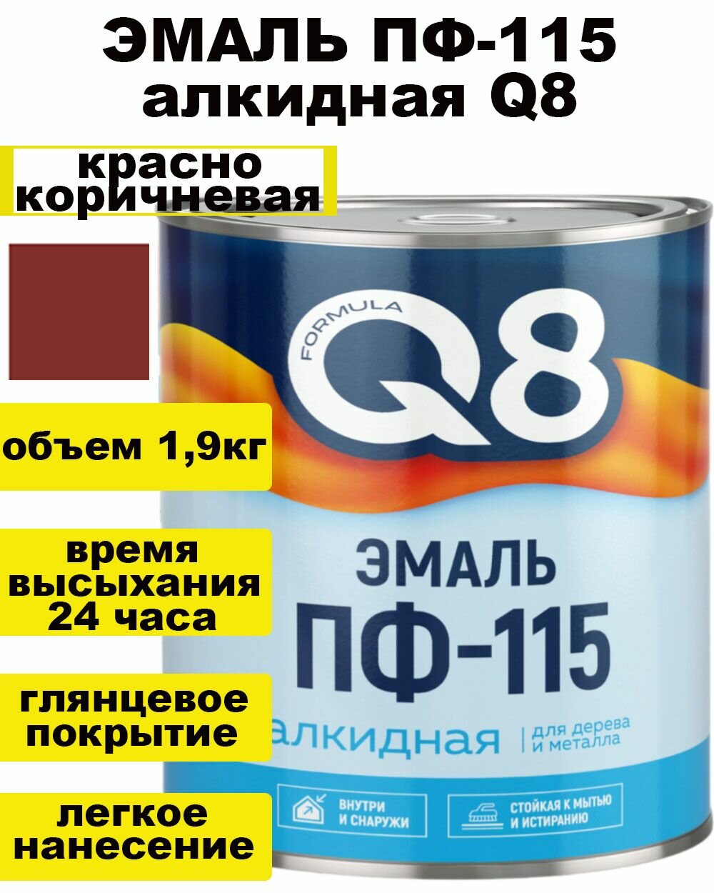 Эмаль ПФ-115 алкидная Formula Q8, глянцевая, 1,9 кг, коричневая, 1шт, металлическая банка