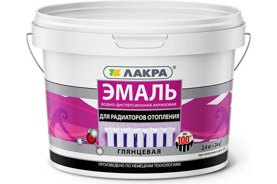 Купить Акриловая эмаль для радиаторов отопления Лакра белая, глянцевая, 2.4 кг 90003485890