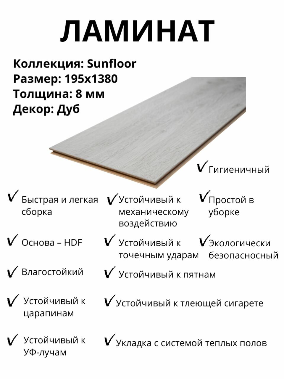 Ламинат Sunfloor 32 дуб джонсон 8 мм 2.153 кв.м