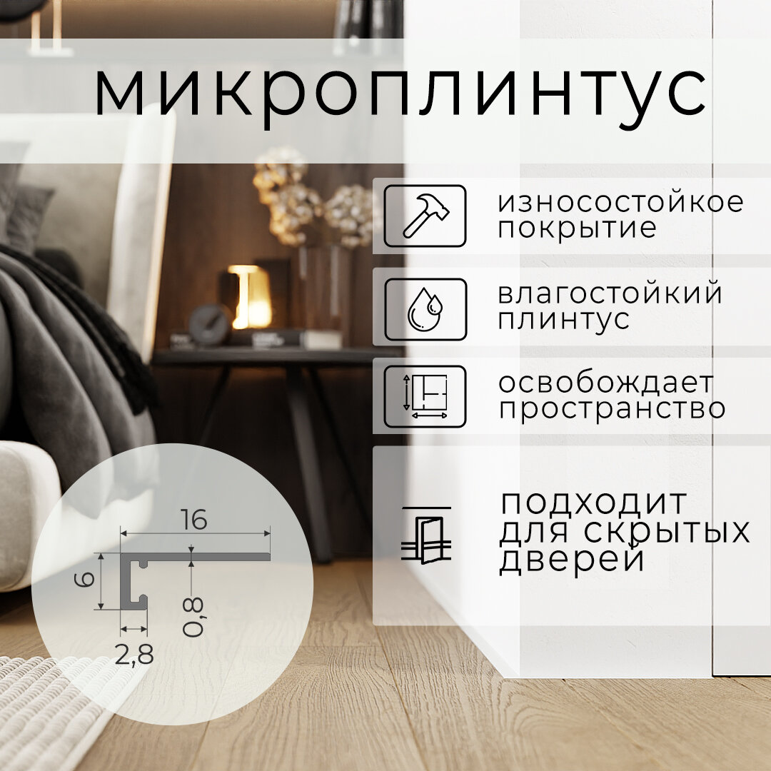 Плинтус на клипсах SSZ-60 мм алюминиевый черный матовый 2.5 м/+5 клипс