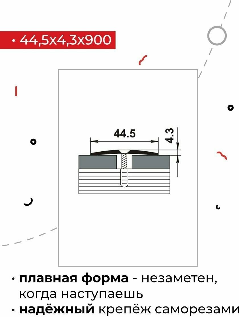 Порог одноуровневый Лука ПС-04, 900 x 44,5 мм, металлический, мербау.