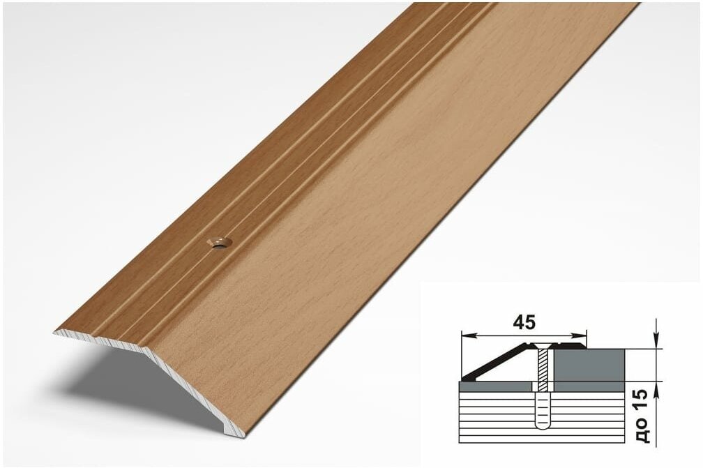 Порог напольный разноуровневый 45х15 мм, длина 1,35 м, профиль-порожек алюминиевый Лука ПР 04, анод шампань 042л