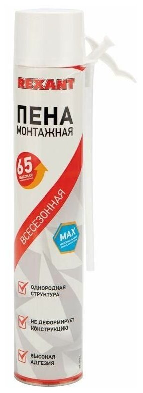 Пена монтажная всесезонная с трубочкой выход 65л max Rexant 89-0904 интересное: