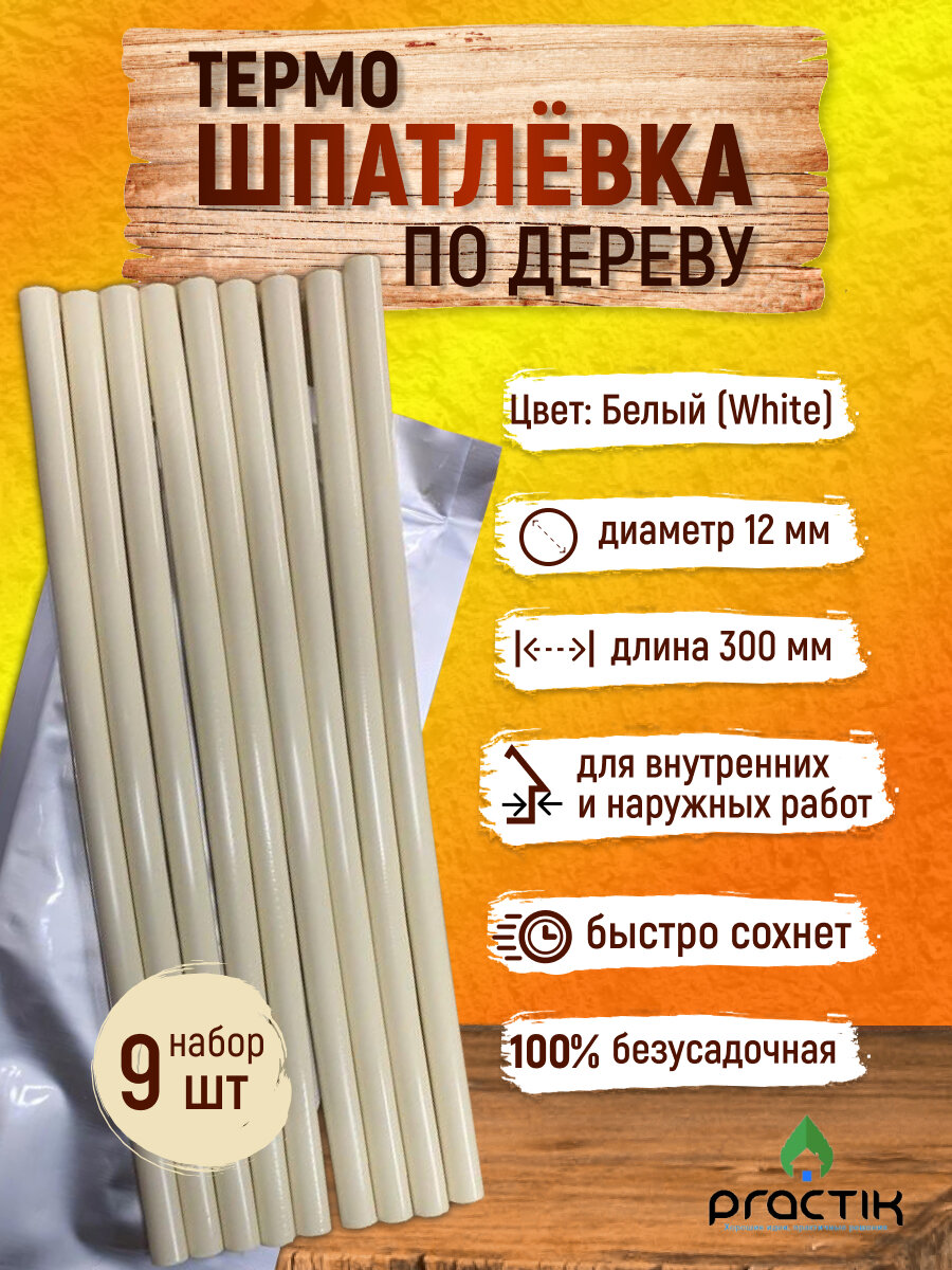 СохранитьТермо шпатлевка, стержень для клеевого пистолета (длинна 30см, диаметр 12мм) быстро сохнет, безусадочная Цвет белый (White) 9 шт(упаковка) интересное: