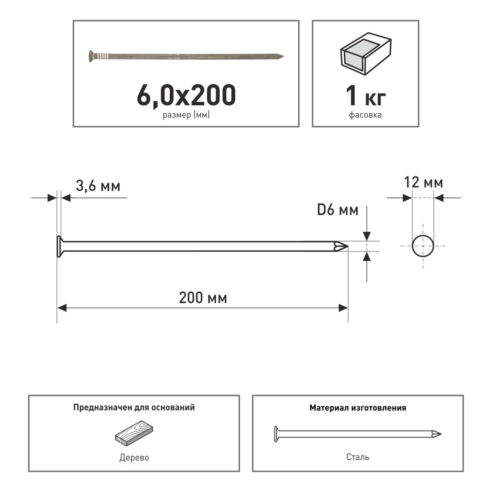 Гвозди строительные Профикреп 6х200 мм 1 кг интересное: