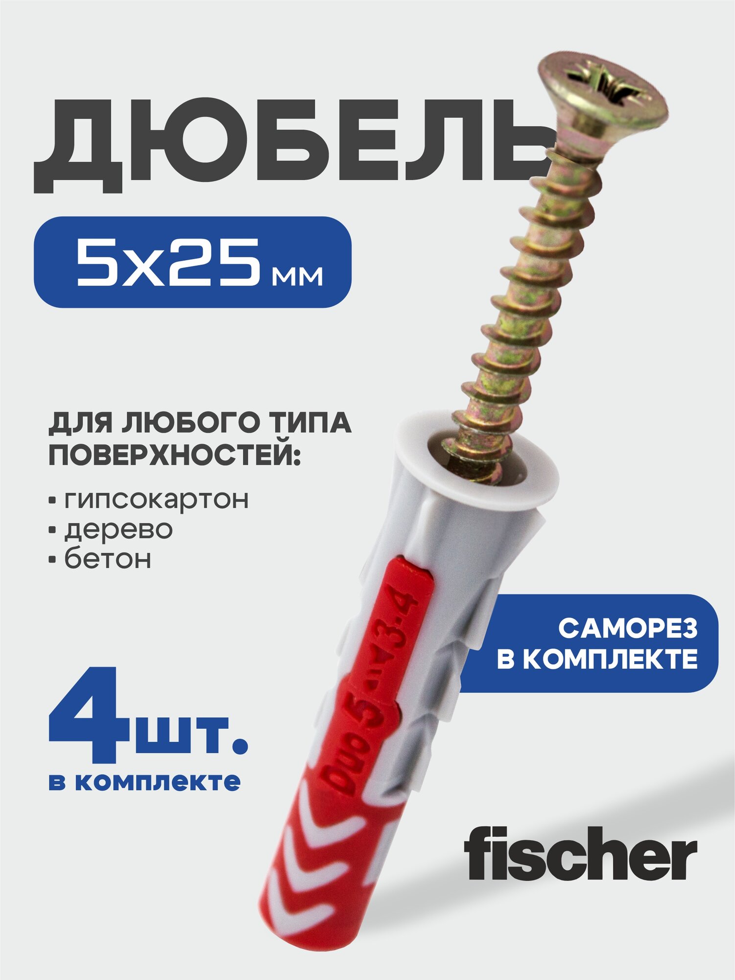 Сохранить5x25 мм + шуруп, 4 шт, DUOPOWER дюбель Fischer универсальный, высокотехнологичный, двухкомпонентный нейлон интересное: