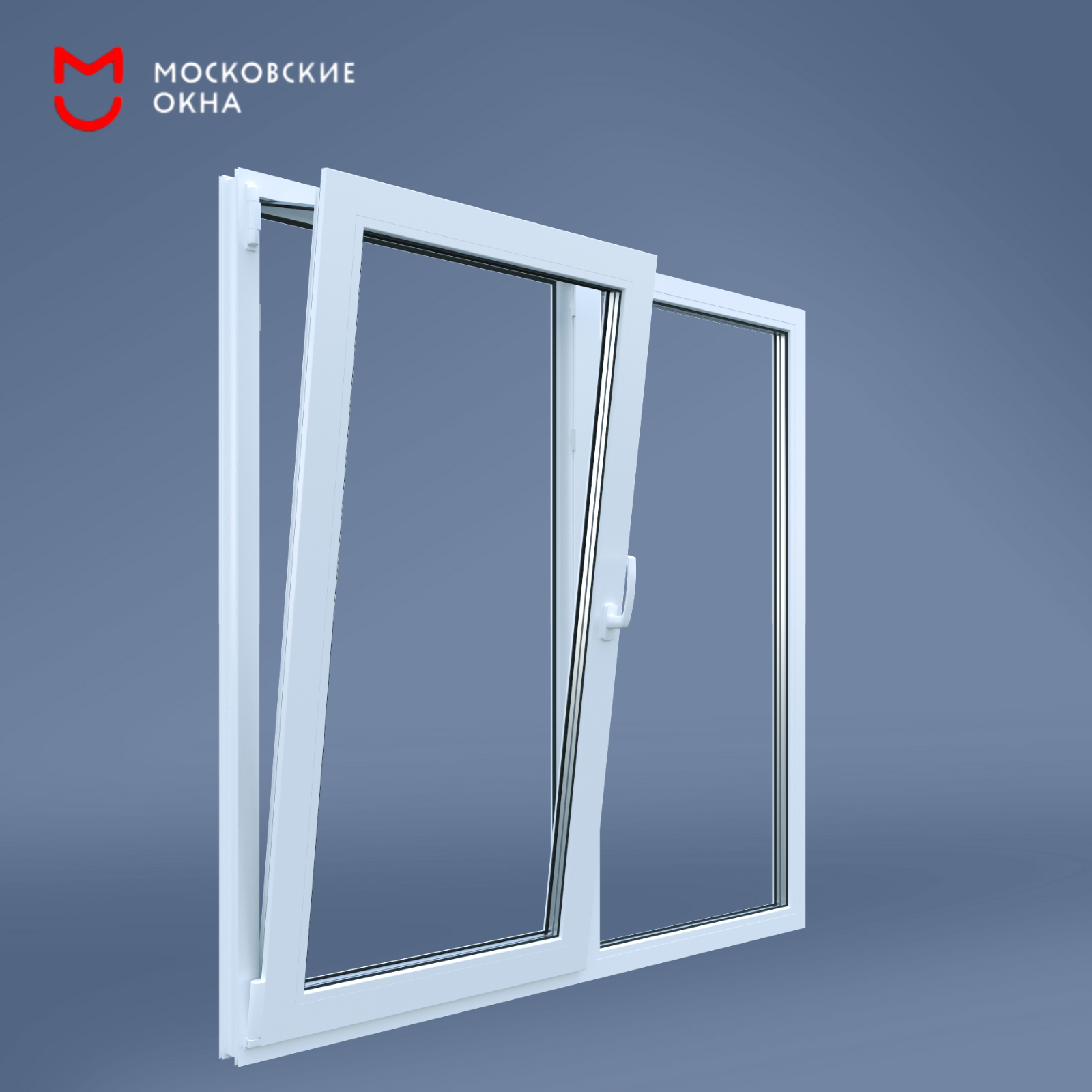 Пластиковое окно ПВХ РЕХАУ BLITZ 1500х1500 мм двухстворчатое с поворотно-откидной и глухой створками, с двухкамерным стеклопакетом