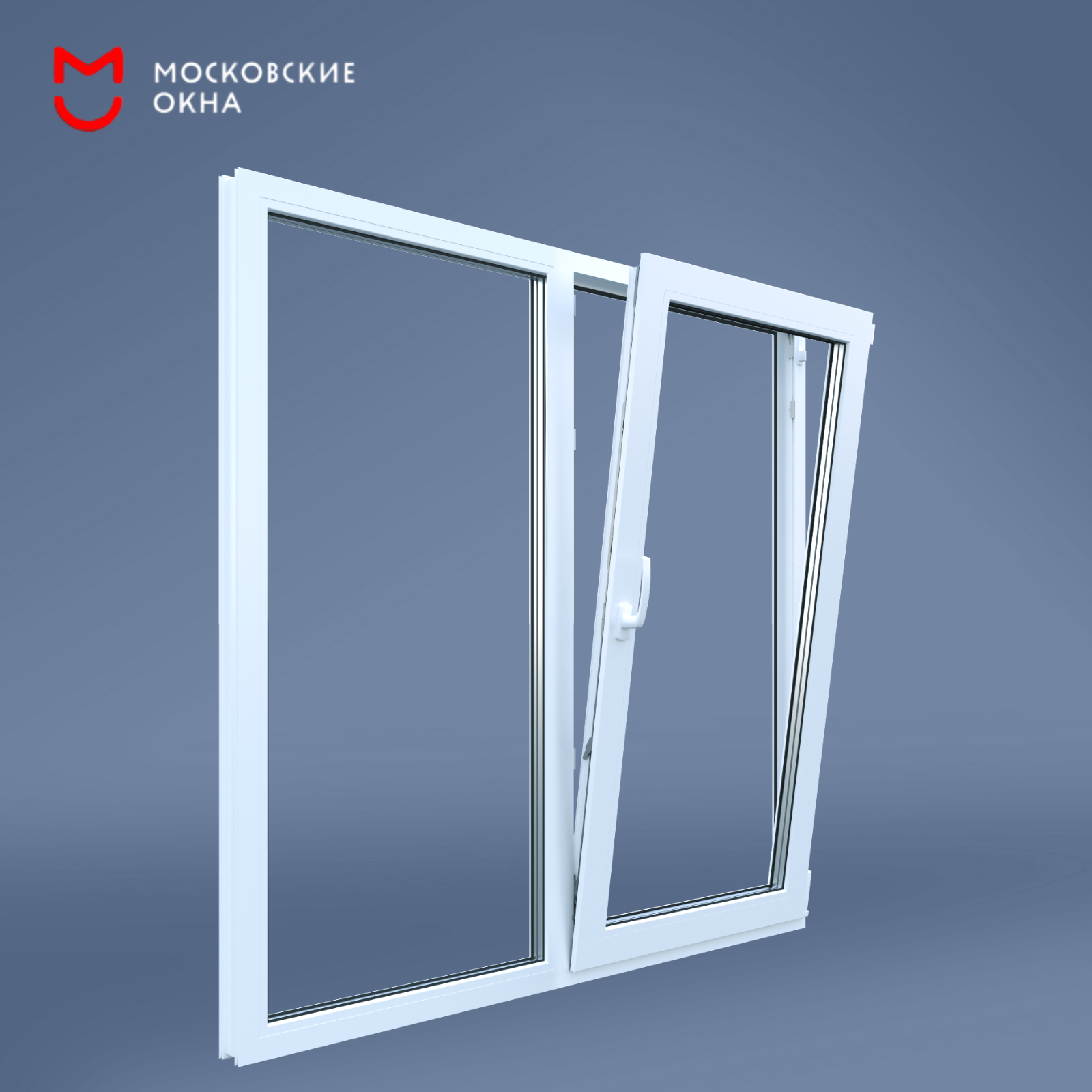 Пластиковое окно ПВХ РЕХАУ BLITZ 1500х1500 мм двухстворчатое с поворотно-откидной и глухой створками, с двухкамерным стеклопакетом