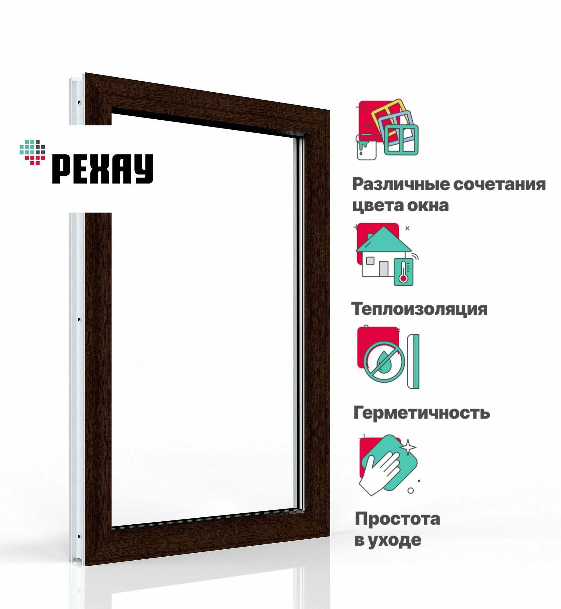 Пластиковое окно ПВХ РЕХАУ BLITZ 600х500 мм (ВхШ) с учетом подставочного профиля глухое, двухкамерный стеклопакет, темный дуб снаружи