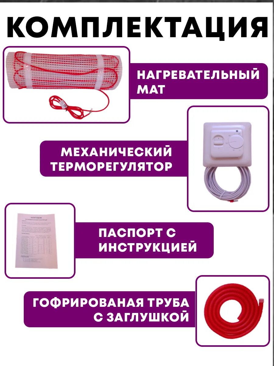 Тёплый пол с терморегулятором электрический под плитку 1.5м2