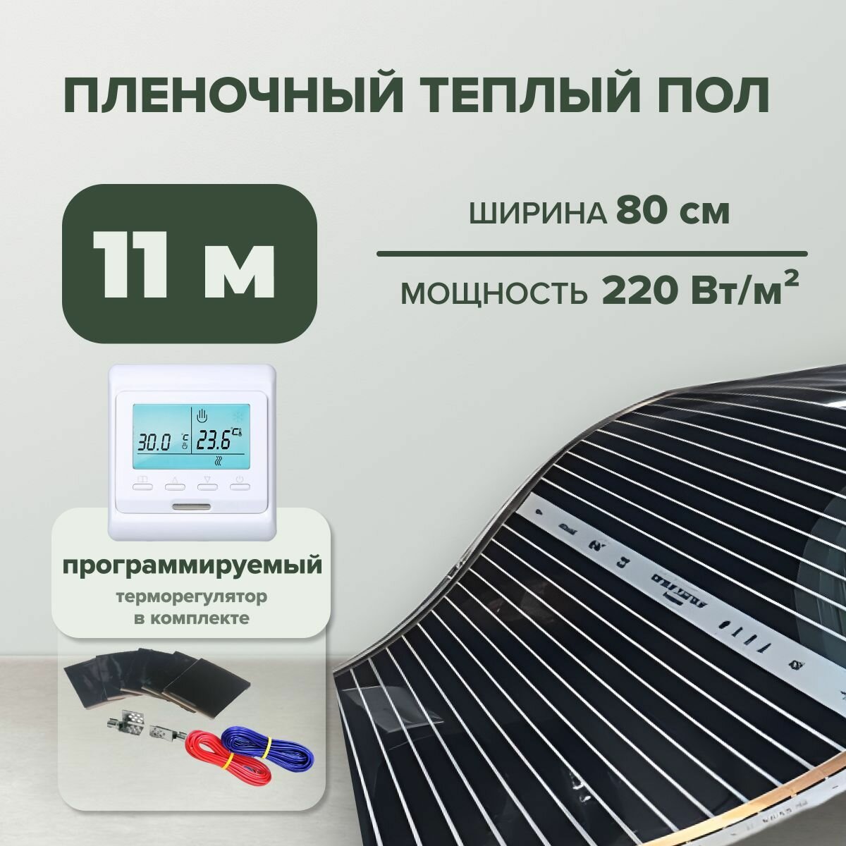 Пленочный теплый пол 11,2 м. кв. ширина 80см с Электронным терморегулятором