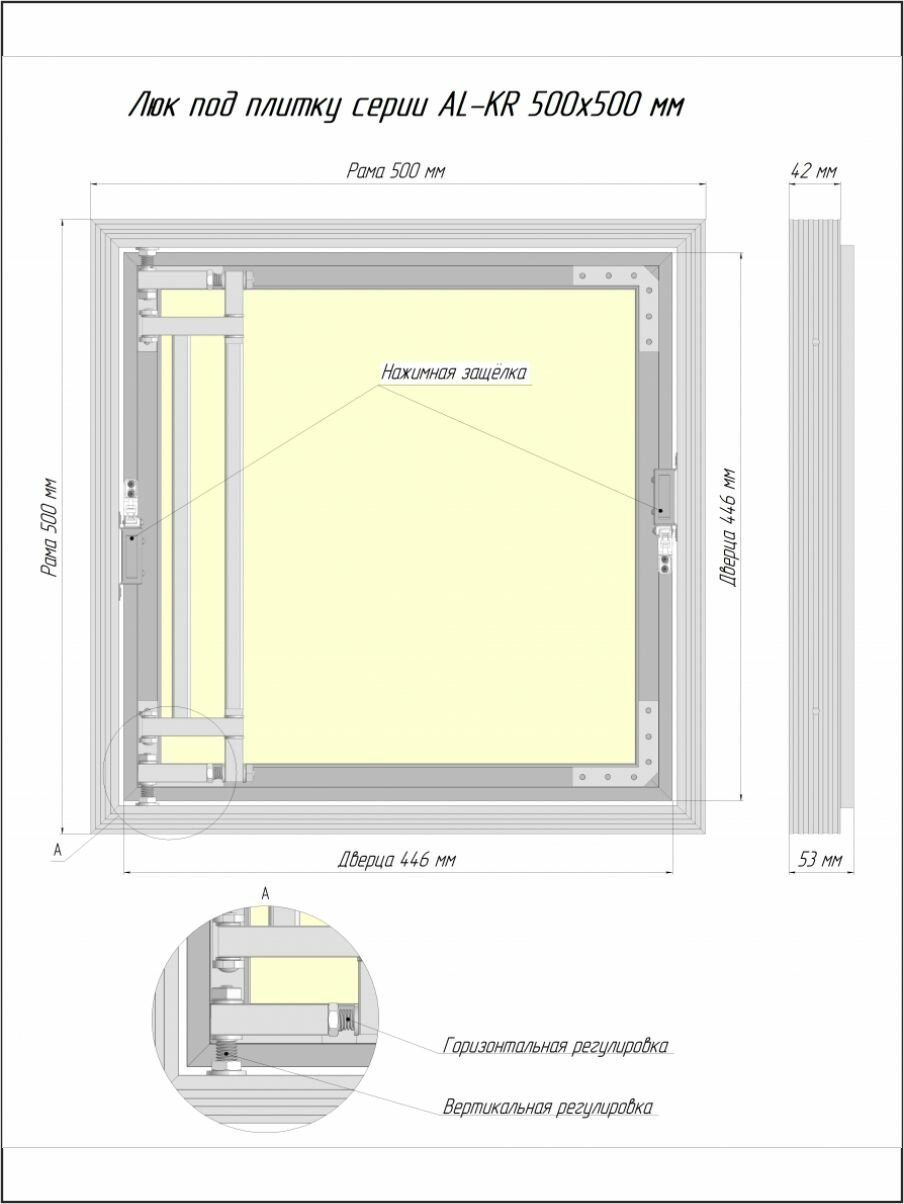 Купить Люк ревизионный под плитку серии AL-KR 50/50 размер дверцы 45/45 (алюминиевый)