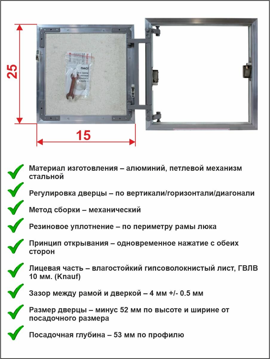 Люк ревизионный серии K 30/20 размер дверцы 25/15