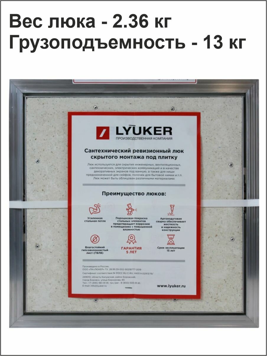 Ревизионный люк под плитку Lyuker K 50/60 Грузоподъемность 9кг