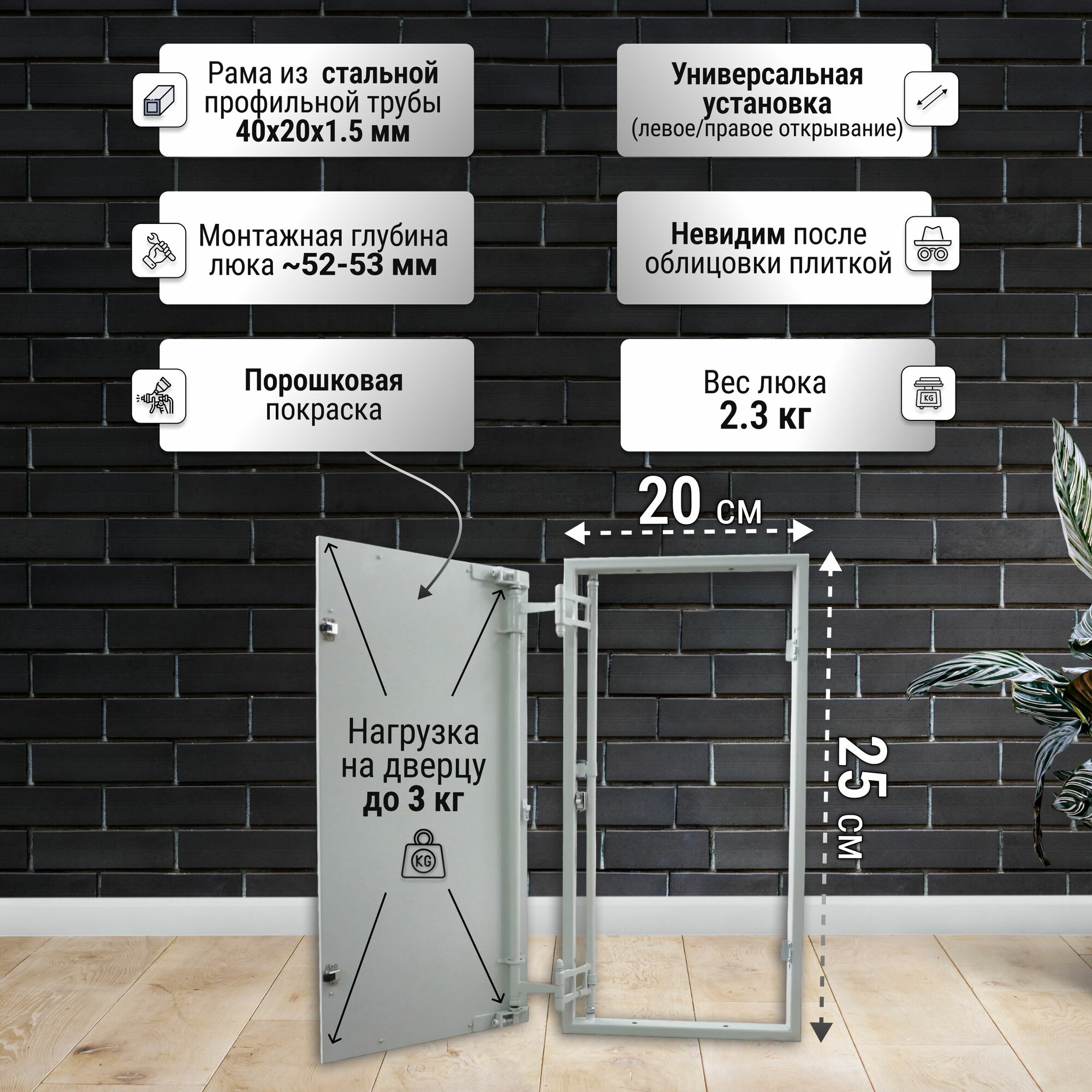 Ревизионный люк Формат КН 40–50 настенный под плитку ПРАКТИКА
