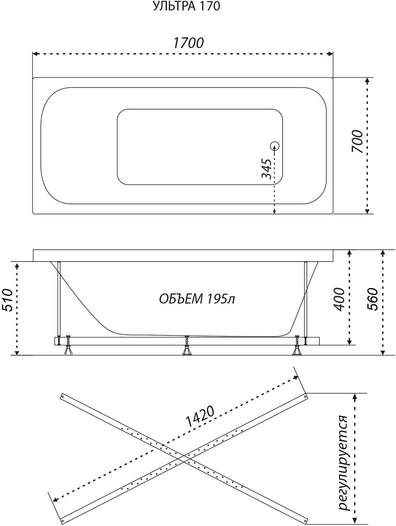 Акриловая ванна Triton Ультра 170х70 см (Х), в комплекте с каркасом усиленным интересное: