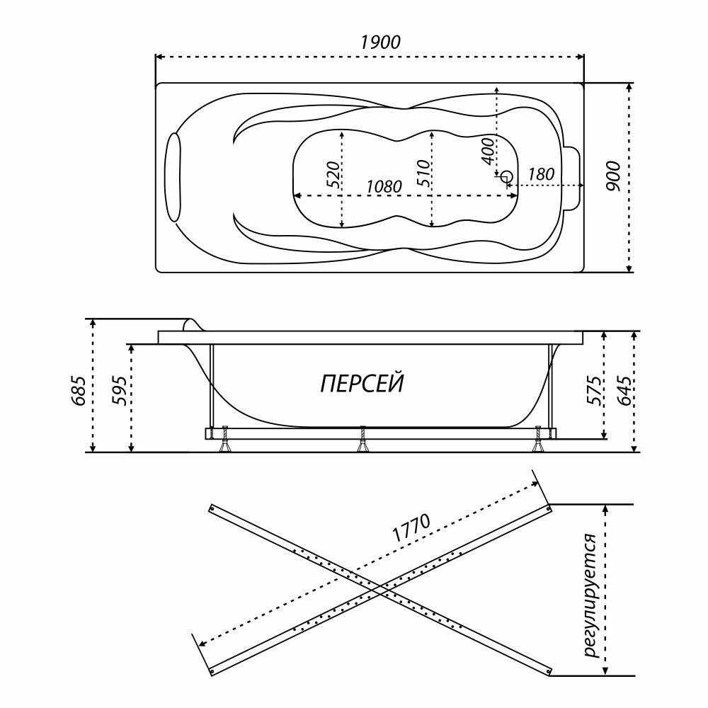 Ванна прямоугольная Тритон акриловая Персей 1900х900х640 мм (Щ0000042337) (на Х-каркасе)