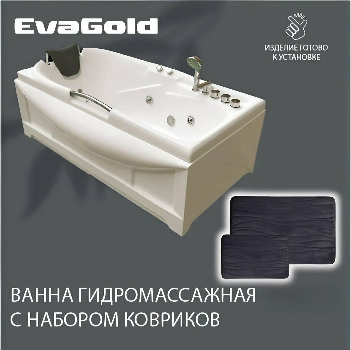 Ванна гидромассажная EvaGold 171х88х54, набор LP501.1 белый для ванной с двумя ковриками для ванной, светло-серый