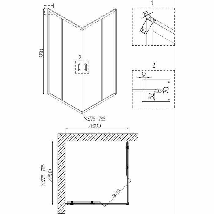 Душевой уголок Black&White Stellar Wind S101 800х800