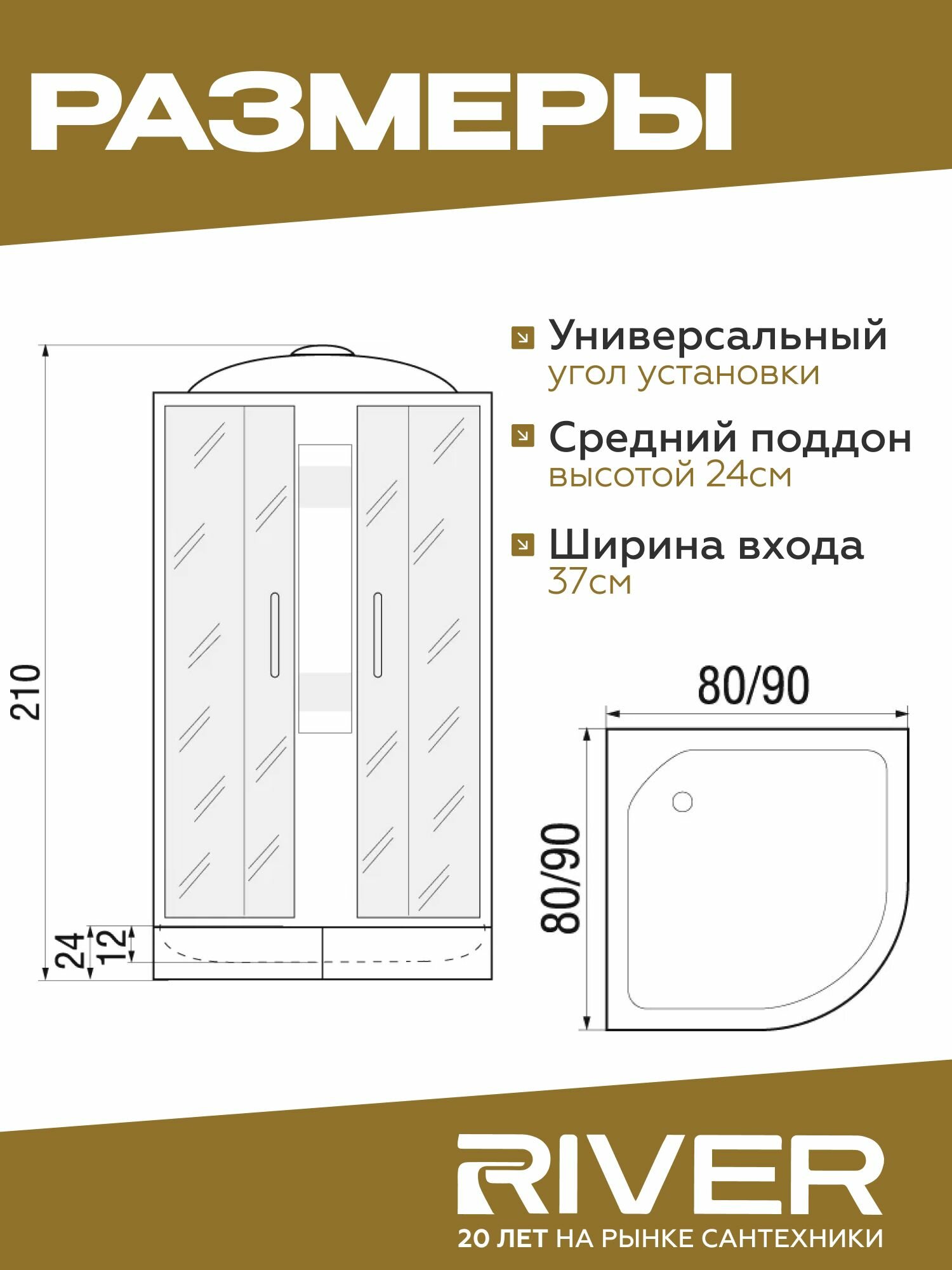 Душевая кабина River REIN (80x80) средний поддон, стекло матовое, универсальная интересное: