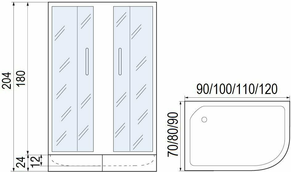 Душевая кабина мономах 120/80/24 МЗ L , 1200*800*2100, асимметричная