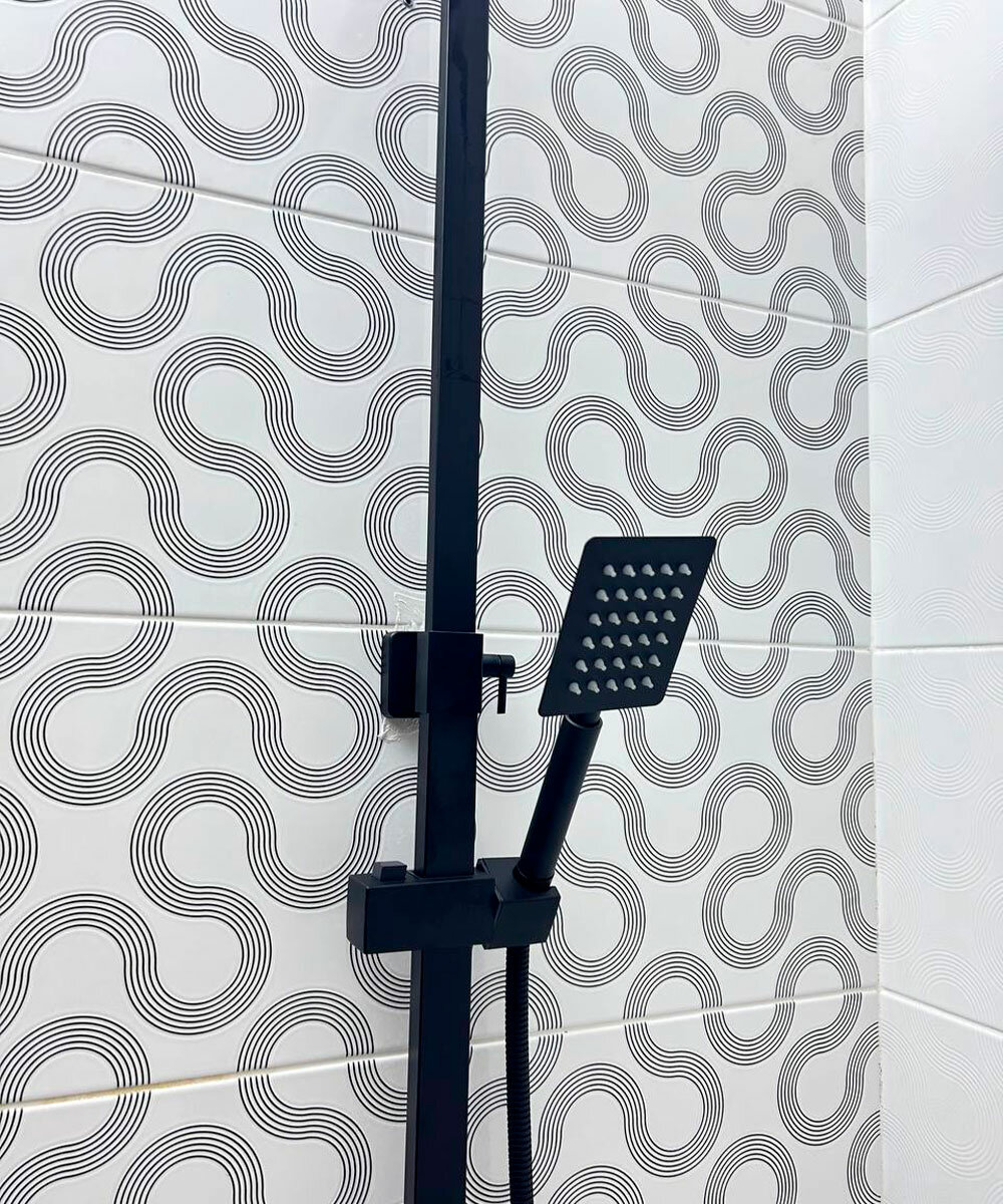 | Комплектация | верхний душ / держатель лейки / душевая штанга / кронштейн для верхнего душа / лейка / Смеситель / шланг |