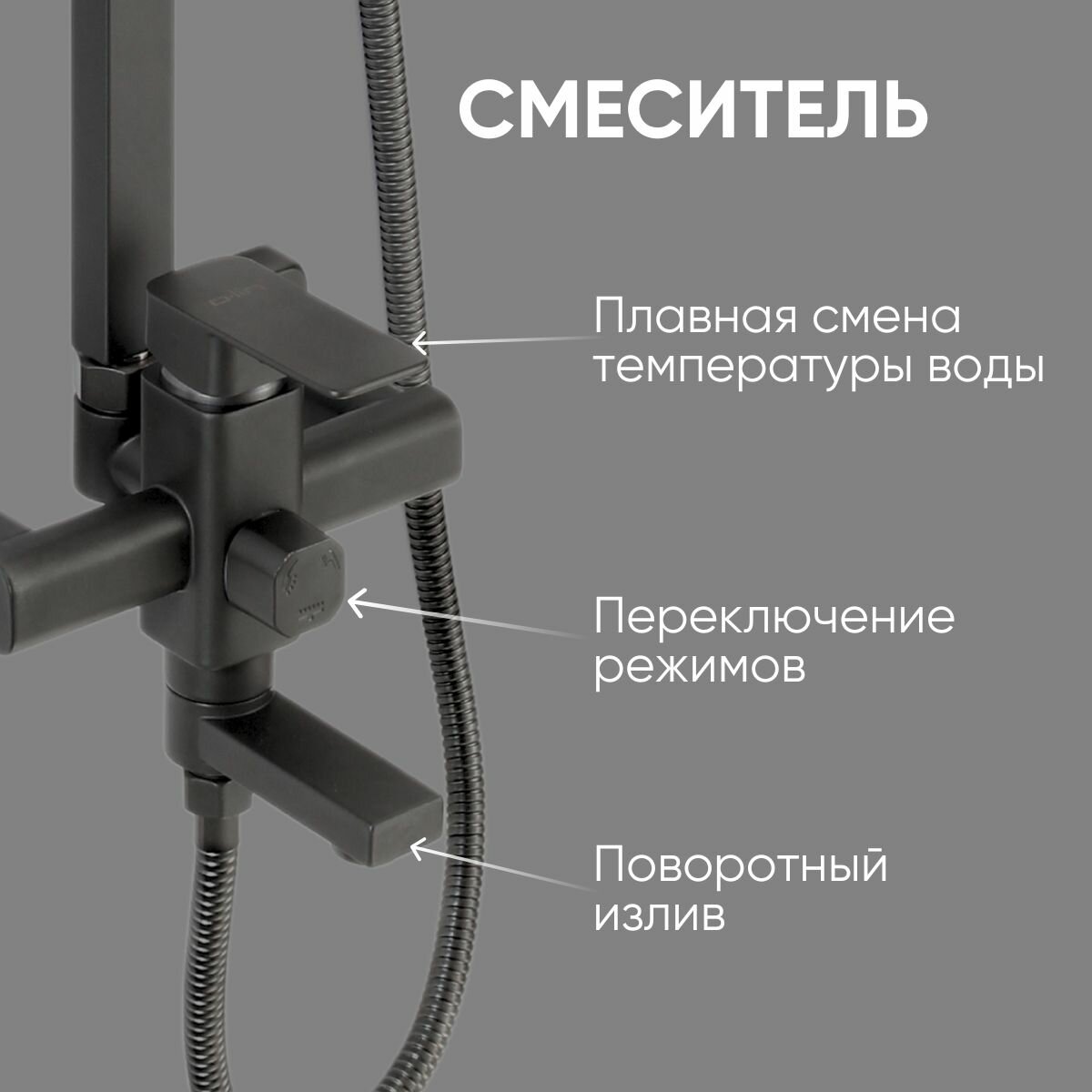 Душевая система с тропическим душем и смесителем, графит/серый для ванны и душа интересное: