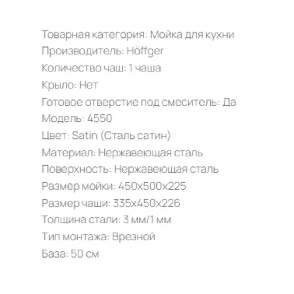 Мойка для кухни, раковина для кухни Hoffger 4550 Satin из нержавеющей стали AISI 304 интересное: