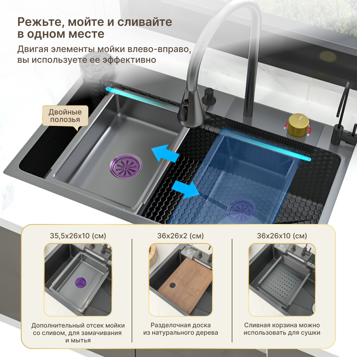 Многофункциональная мойка DHome для кухни из нержавеющей стали цвет графит интересное: