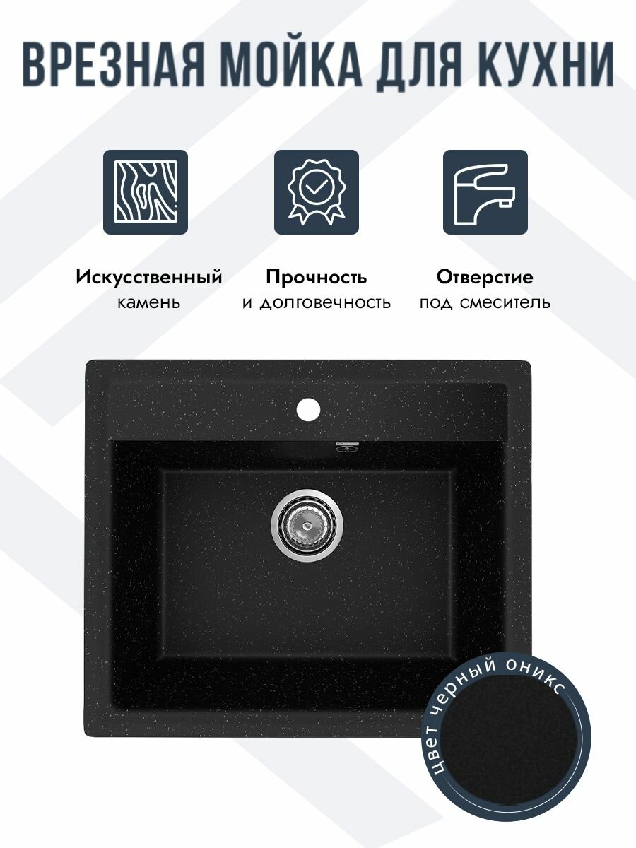 Мойка Practik PR-М 565, искусственный мрамор, черная, 56,5x49,5 см