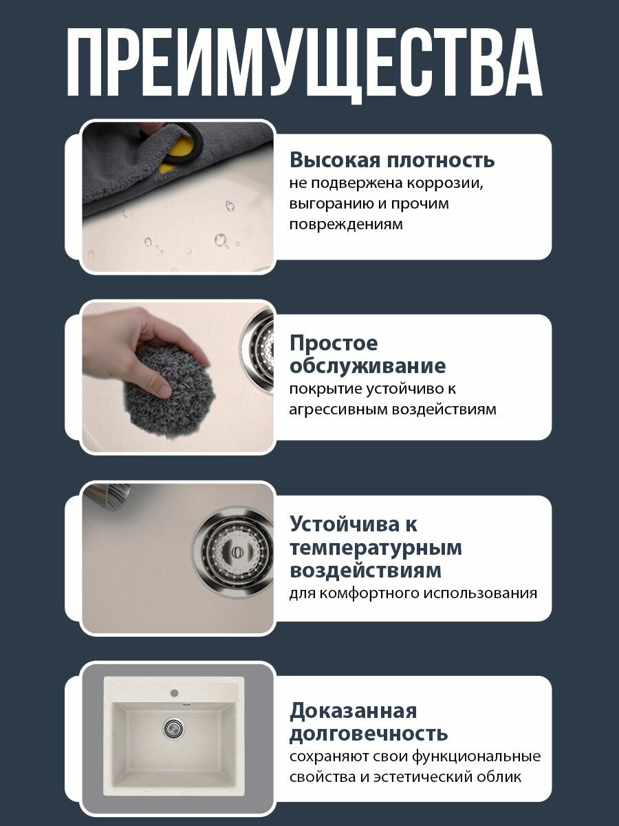 Мойка кухонная Practik из искусственного камня прямоугольная без сифона PR-M-565, цвет: слоновая кость, база: 54х47 см, арт. PR-M-565-002