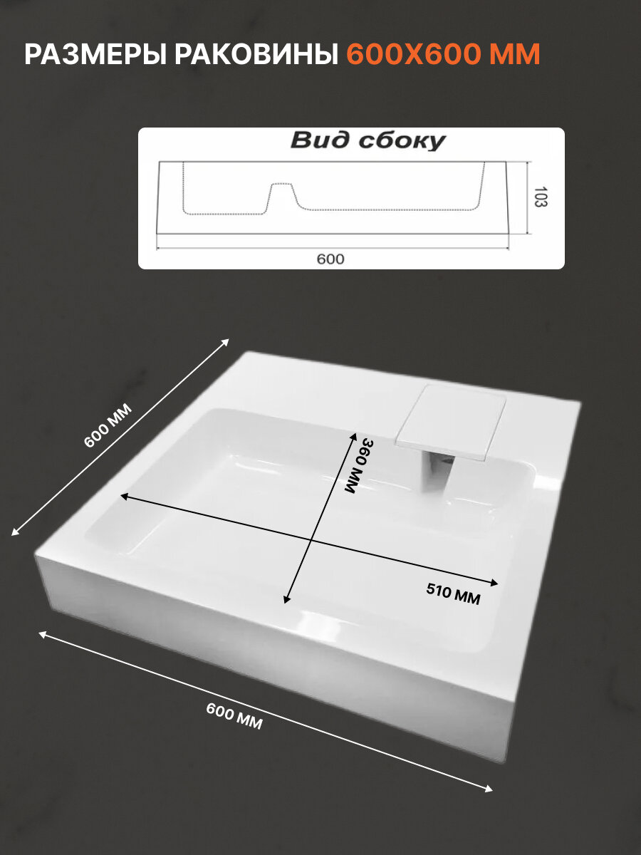 Раковина над стиральной машиной 60х60 Стандарт 60, цвет белый, литьевой мрамор интересное: