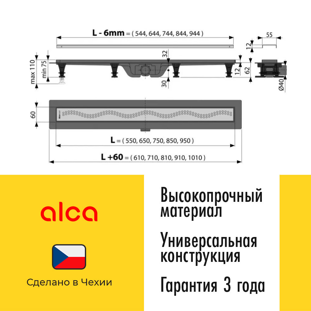 Душевой трап Alca Plast APZ10-550M