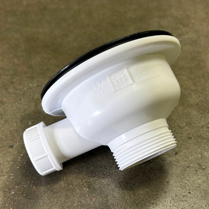 Сифон для мойки большая горловина с переливом, с отводом под сливной шланг и со съёмной корзинкой для мусора