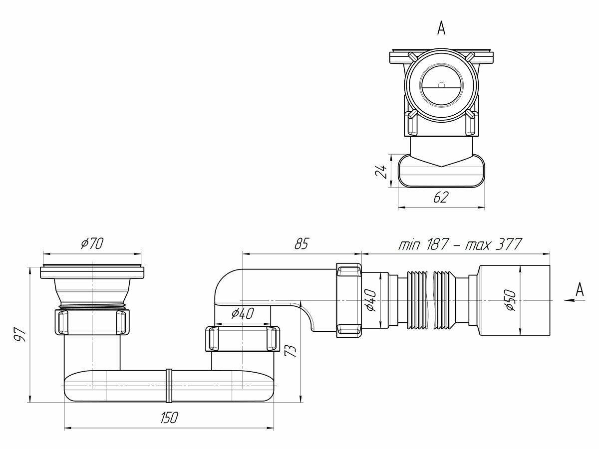 Трубный (коленный) сифон для душевого поддона, для раковины, для мойки АНИ Пласт E015 белый 70 мм 261 г интересное: