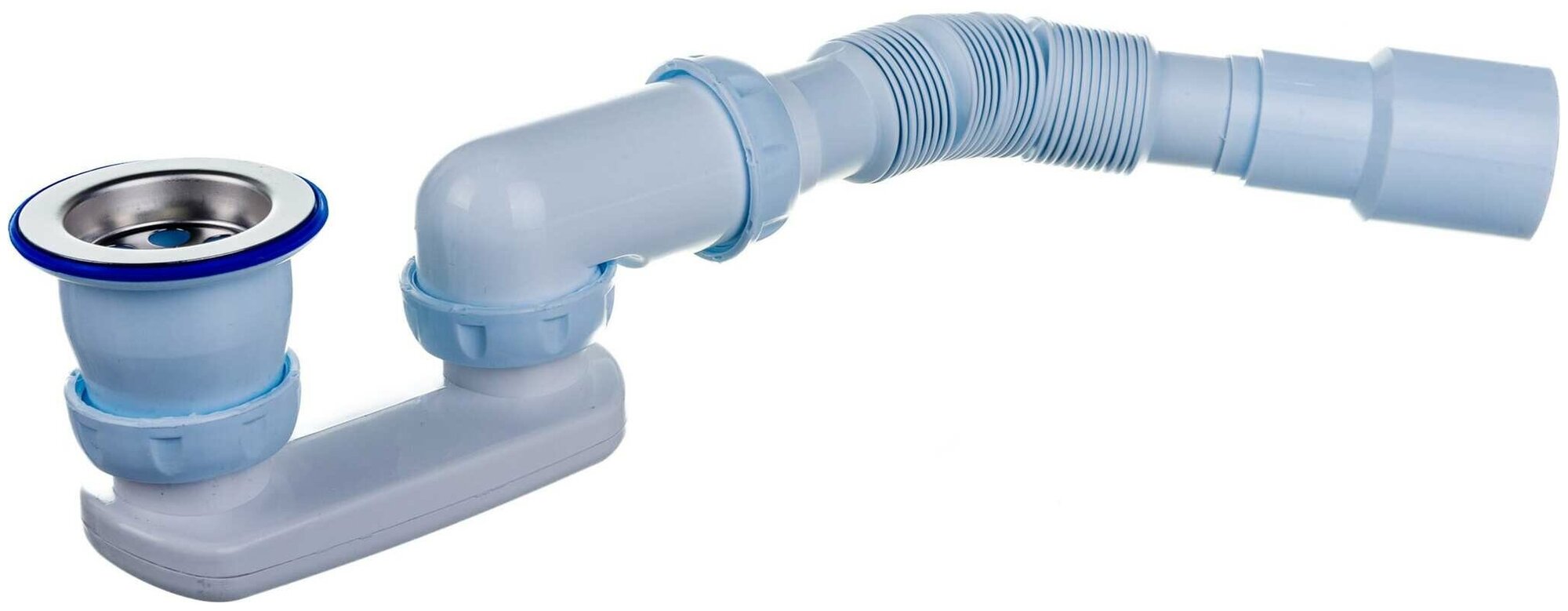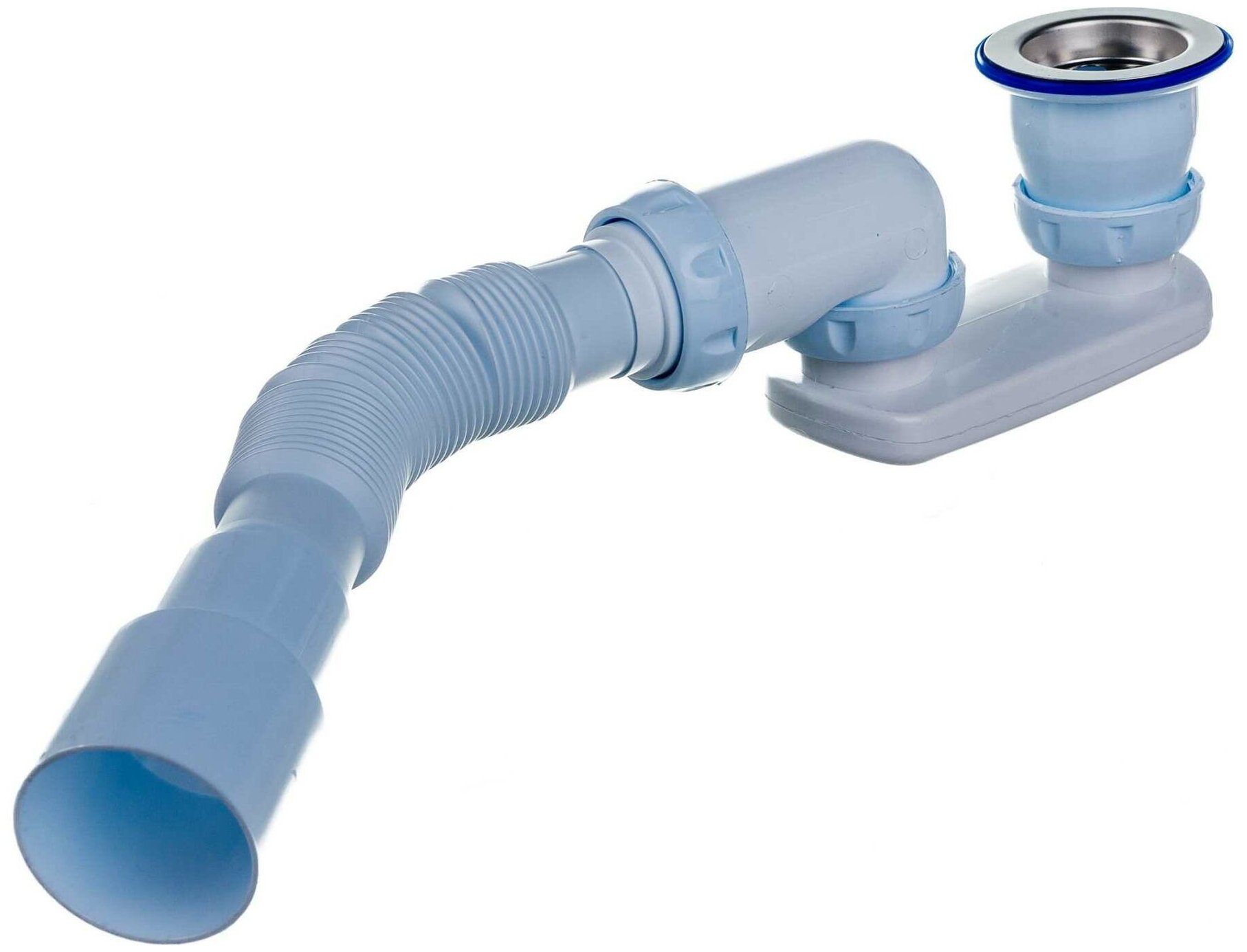 Купить Сифон для душевого поддона регулируемый плоский 1 1/2"х40 (нерж. вып) с прикруч. выпуском 1 1/2" гофра 40х40/50