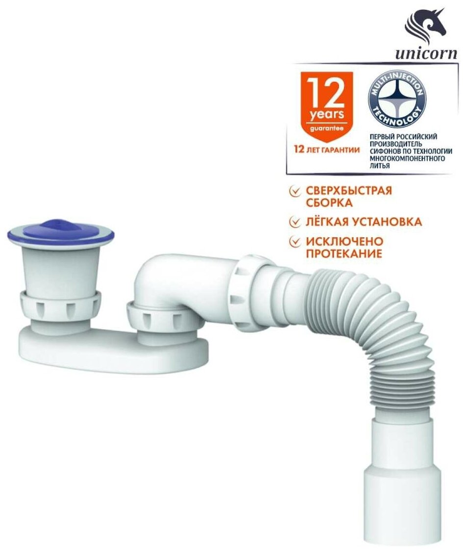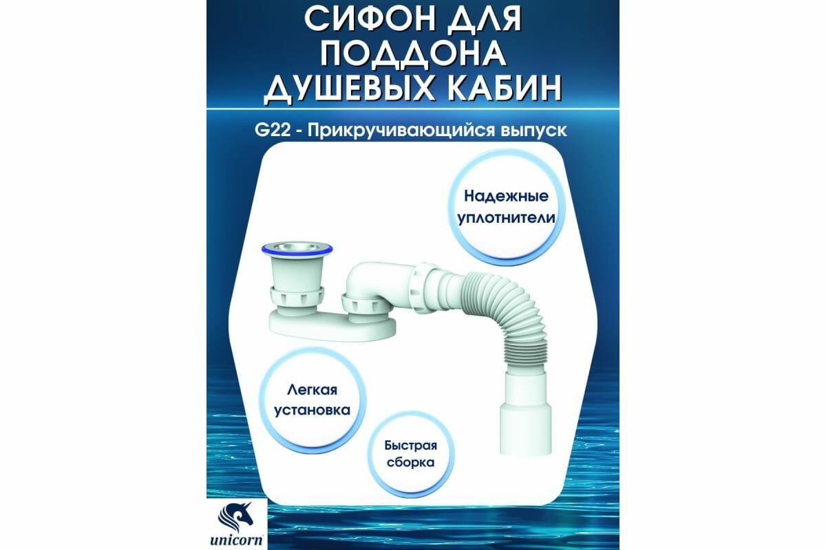 Гофрированный сифон для душевого поддона, для ванны unicorn G22