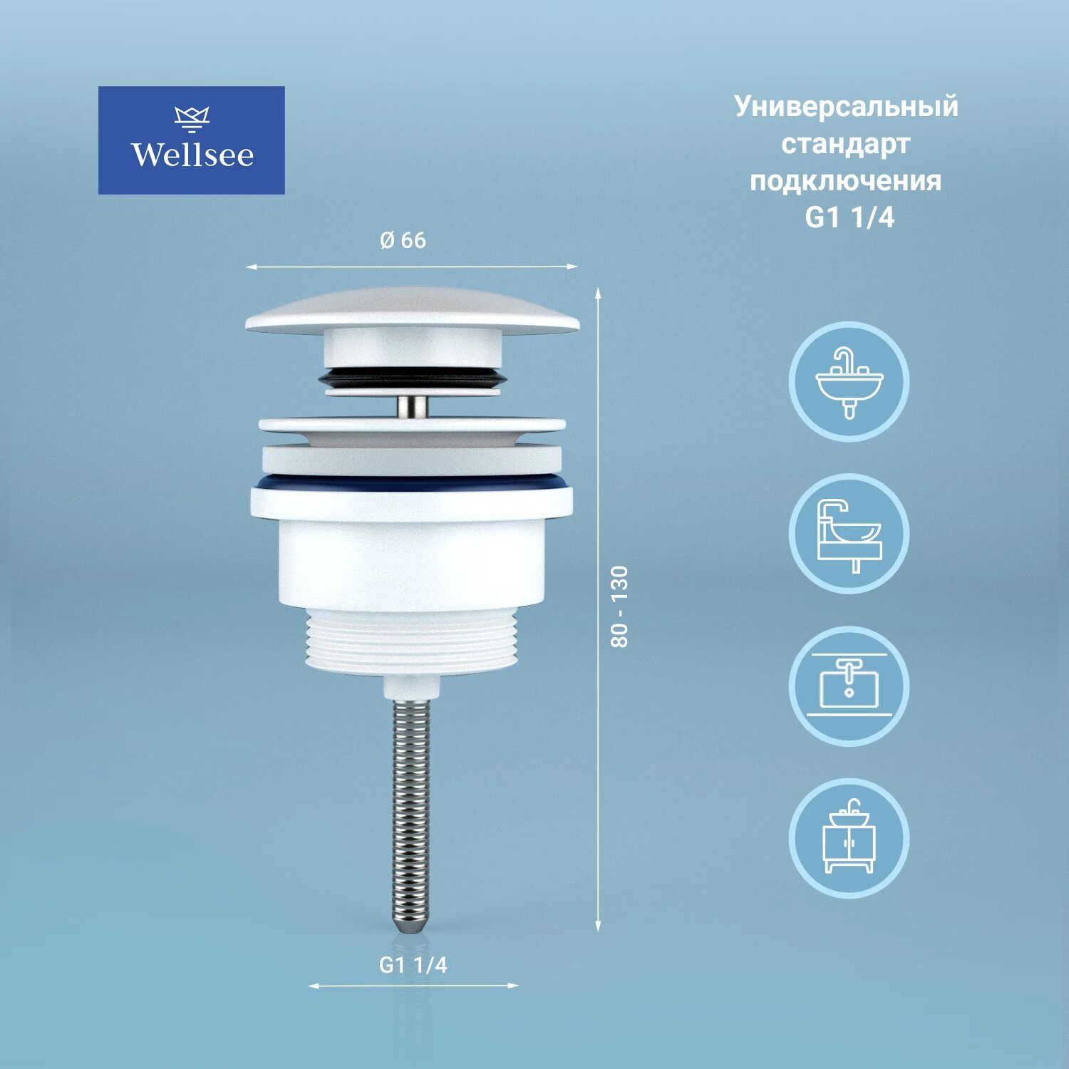 Универсальный донный клапан для раковины Wellsee Drainage System 182143000, для умывальников с переливом/без перелива, латунь, цвет матовый белый