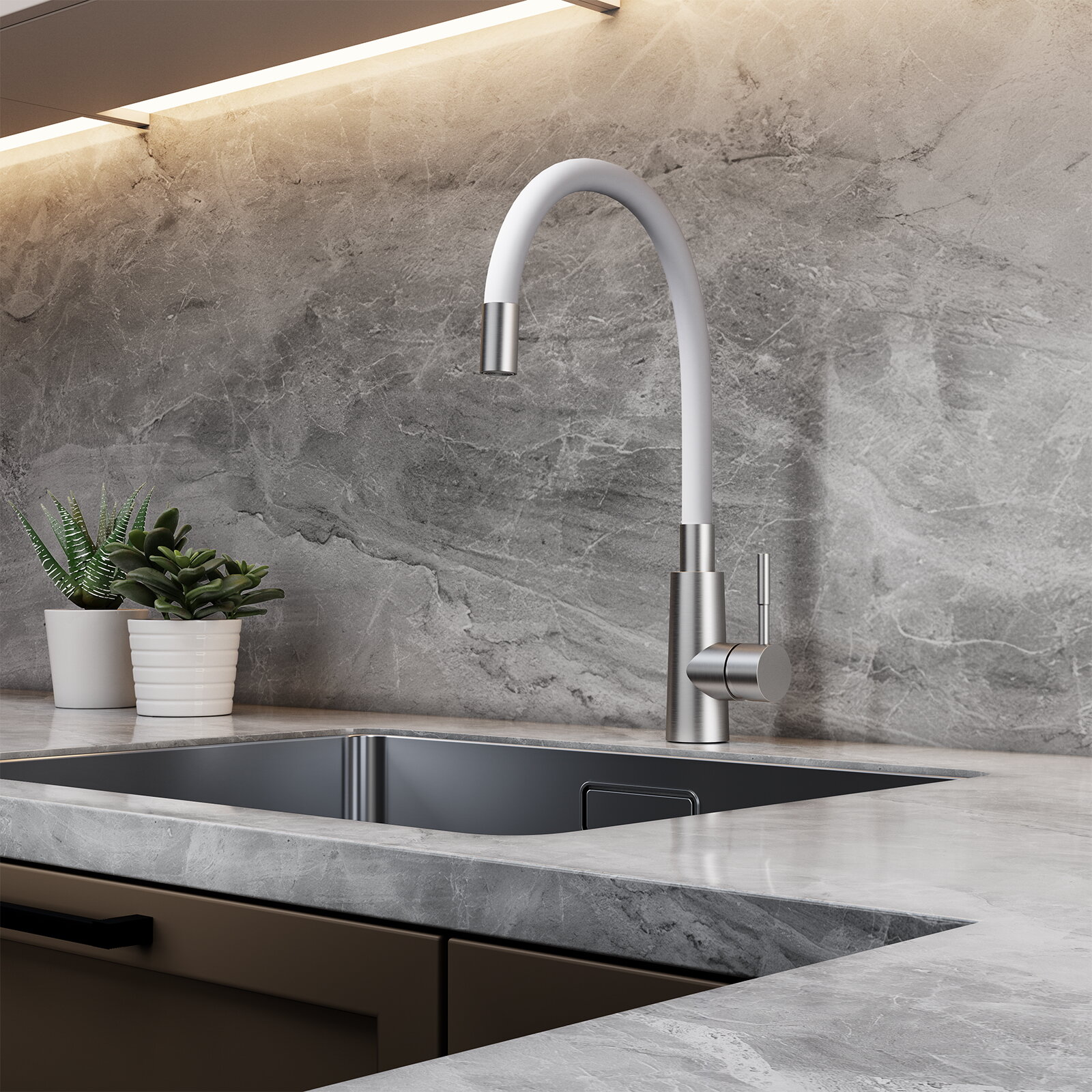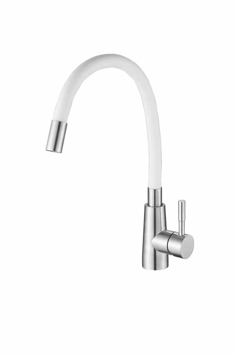 Смеситель для кухни с гибким изливом ,белый, нержавеющая сталь/для мойки/раковины