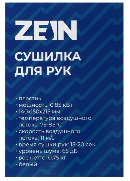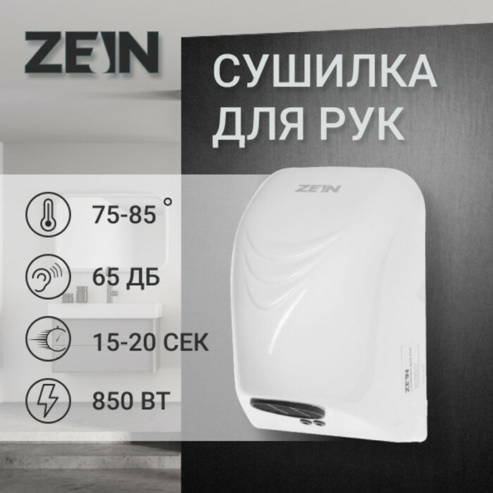 Сушилка для рук Zein Hd226, 0.85 кВт, 140х150х215 мм, белая 7576481