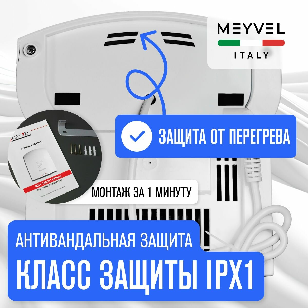 Сушилка для рук Meyvel электрическая высокоскоростная MH1-1800P1 (White) интересное: