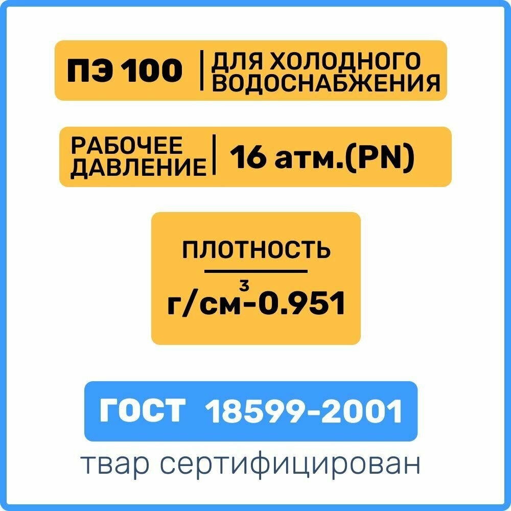 М Труба ПНД 63х3.8 20атм для питьевого водоснабжения ГОСТ 18599-2001, метр (70 п/м)
