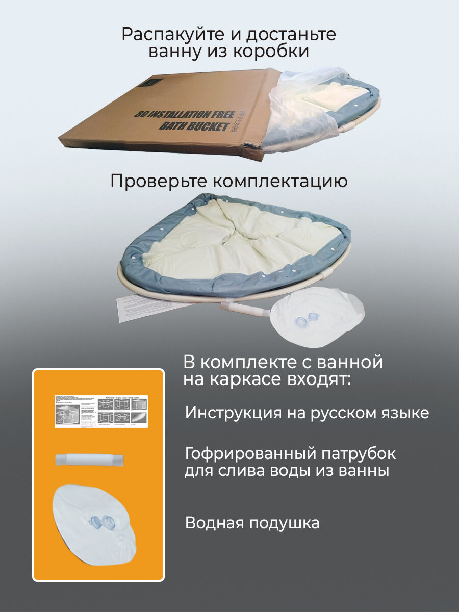 СохранитьСкладная Угловая ванна SUN-BUGS, с боковым и донным сливом, 240л, серая интересное: