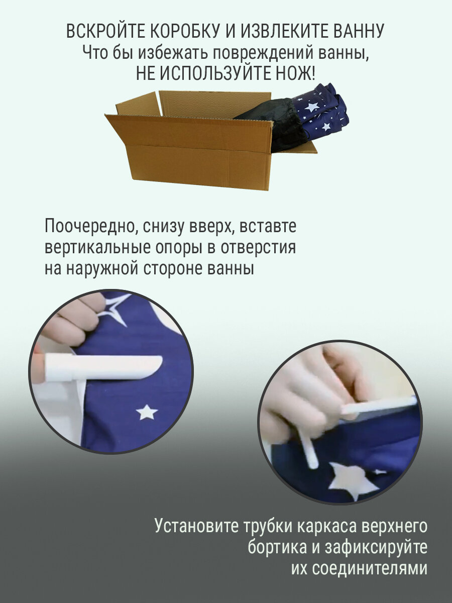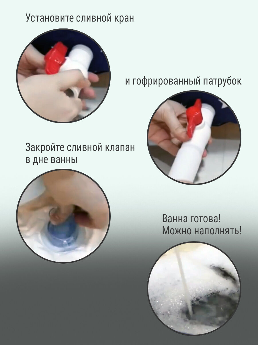 | Дополнительная информация | ванна не требует сборки, поставляется в сборе со складным каркасом; ванна снабжена боковым и донным клапаном для слива воды; рекомендуемый объем наполнения чаши - 2/3 от высоты бортика |