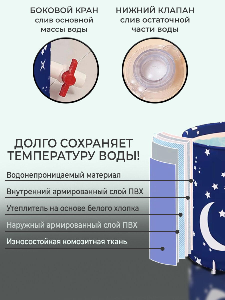 СохранитьКруглая складная ванна SUN-BUGS, утепленная чаша из ПВХ, синяя, 70см, 250л интересное: